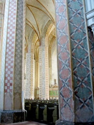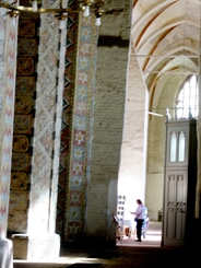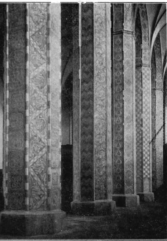 Der Eintretende wird beim ersten Blick über die zurückhaltende farbige Gesamtstimmung erstaunt sein. Hierbei ist jedoch zu bedenken, daß die Malereien erst unter einer mehrschichtigen Kalktünche hervorgeholt werden mußten und daß die Entfernung des letzten, Kalkschleiers ohne Eingriffe in die Farbsubstanz nicht möglich gewesen wäre. Andererseits gebot das gegenüber den Restaurierungsmethoden früherer Jahrzehnte angewandte Konservierungs- und Sicherungsverfahren, daß es bei einer reinen Freilegung verblieb und daß von jeder zusätzlichen farbigen Uebermalung der alten, zum Teil in reiner Freskotechnik aufgetragenen Erdfarbe abgesehen wurde. Einige geringfügige farbige Ergänzungen fanden nur an den unteren Teilen einiger Pfeiler und an einigen Schrägflächen der Arkadenbogen statt. Im übrigen steht das gesamte dekorative System heute in seiner ursprünglichen mittelalterlichen Form und Farbe vor uns und niemand wird sich dem lichten und freundlichen Gesamteindruck, den dieser mittelalterliche Raum heute zurückläßt, entziehen. Gegenüber den vielen mißverstandenen Restaurierungen anderer mittelalterlicher Wandmalereien bietet uns der Anblick dieses Innenraums heute ein geschlossenes Bild der künstlerischen Einheit von Farbe und Architektur im Mittelalter.