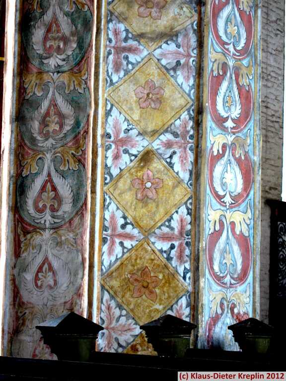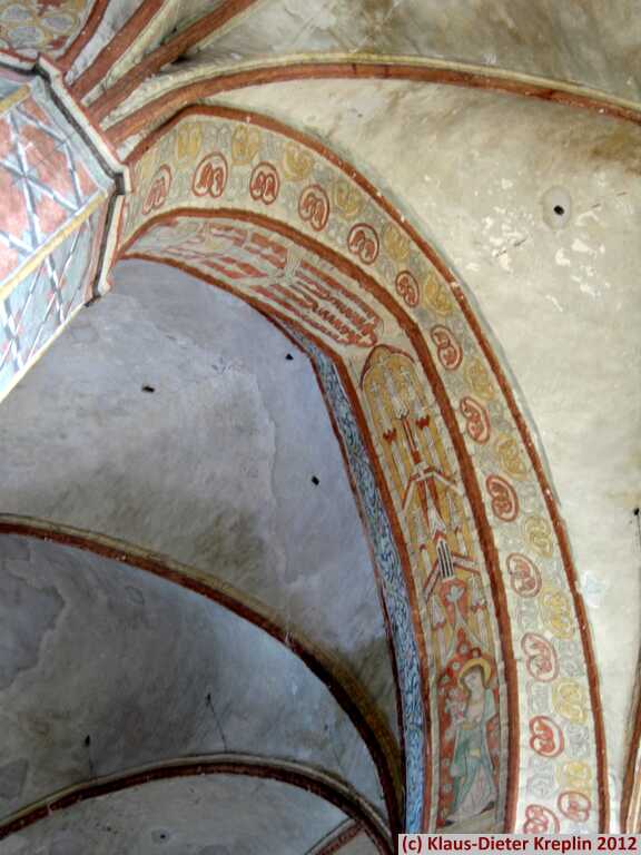 Auf eine eigene Beschreibung der Bilder habe ich verzichtet, stattdessen wird der Bericht über Wandmalereien aus dem Anklamer Heimatkalender von 1939 im Anhang mit abgedruckt.